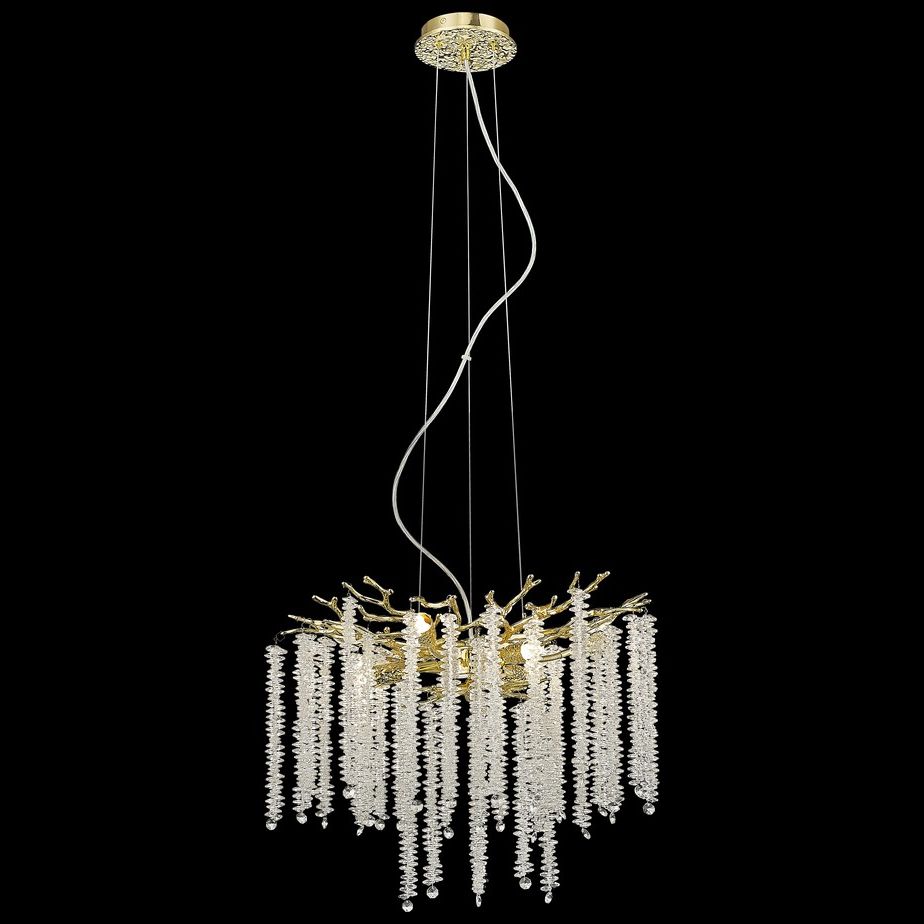 Выдающаяся модель 185-303-06 от итальянской компании Velante относится к коллекции 185 и отлично подойдет для установки на потолок спальни, оформленной в стиле флористика. Подвесная люстра Velante 185-303-06 с плафонами в форме цветов осветит помещение площадью 12 кв. м. Производитель Velante рекомендует использовать для устройства галогеновые лампы с цоколем G9 и мощностью 40 W. Прибор произведен с использованием материалов: хрусталь и металл и может использоваться для натяжного потолка. Основным цветом товара является золотой. Подвесная люстра 185-303-06 продается по цене 26168 руб. Торопитесь сделать заказ в интернет-магазине ВамСвет.