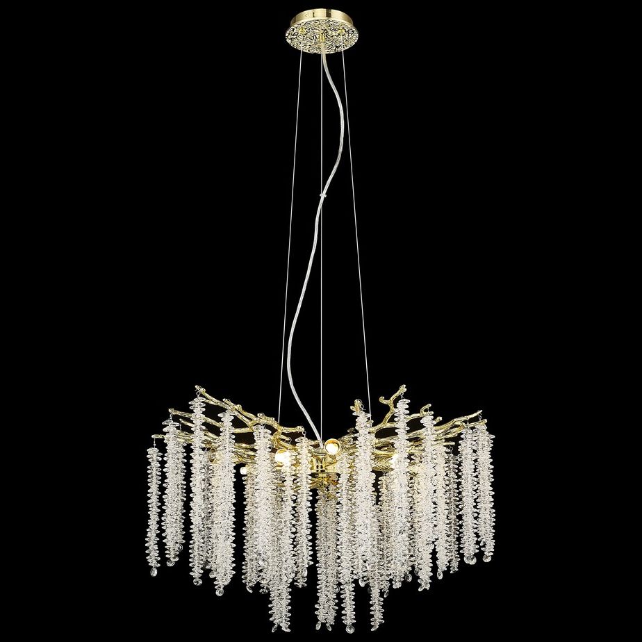 Восхитительная модель 185-303-08 от итальянской компании Velante относится к коллекции 185 и отлично подойдет для установки на потолок спальни, оформленной в стиле флористика. Подвесная люстра Velante 185-303-08 с плафонами в форме цветов осветит помещение площадью 16 кв. м. Производитель Velante рекомендует использовать для устройства галогеновые лампы с цоколем G9 и мощностью 40 W. Прибор произведен с использованием материалов: хрусталь и металл и может использоваться для натяжного потолка. Основным цветом товара является золотой. Подвесная люстра 185-303-08 продается по цене 33331 руб. Торопитесь сделать заказ в интернет-магазине ВамСвет.