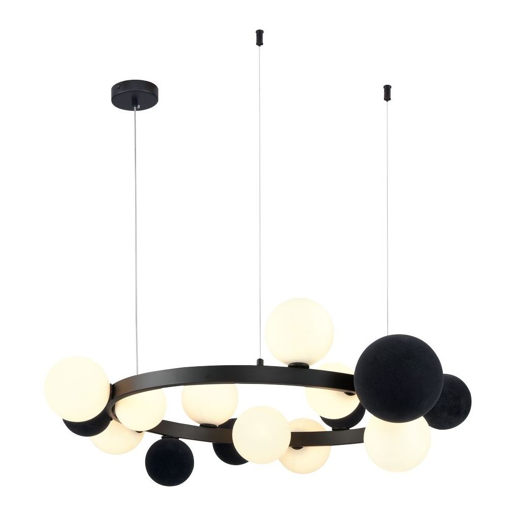 Роскошная модель WE237.15.023 от немецкой компании Wertmark относится к коллекции Berta и отлично подойдет для установки на потолок кабинета, оформленного в современном стиле. Подвесная люстра Wertmark Berta WE237.15.023 с плафонами в форме шара осветит помещение площадью 18 кв. м. Производитель Wertmark рекомендует использовать для устройства галогеновые лампы с цоколем G9 и мощностью 40 W. Прибор произведен с использованием материалов: стекло и металл и может использоваться для натяжного потолка. Основным цветом товара является черный. Подвесная люстра WE237.15.023 продается по цене 48550 руб. Торопитесь сделать заказ в интернет-магазине ВамСвет.