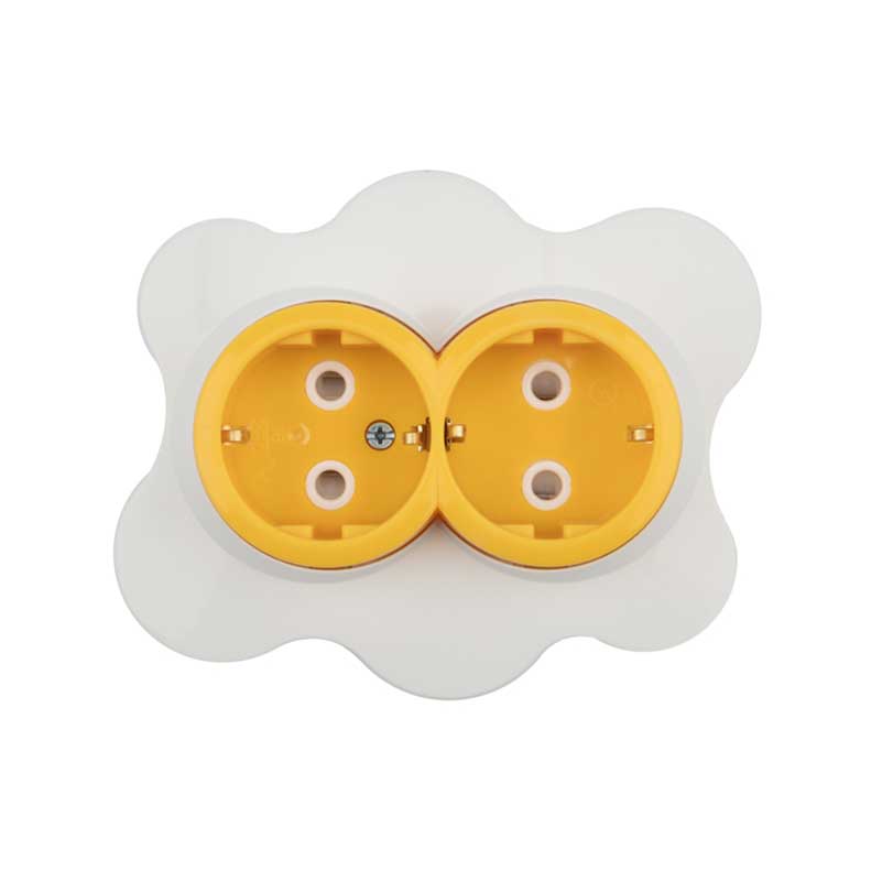 Розетка двойная KRANZ HAPPY Яичница скрытой установки, с заземлением и защитными шторками, желтая/белая KR-78-0632